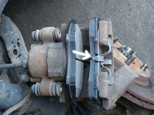 Did you ever wonder why your brakes squeak just before it's time to replace them? This is actually done on purpose to warn the driver and give you notice that your brakes are almost ready to be replaced. Manufacturer does this by extending thin piece of sheet metal (see photo) which will rub against your disc break before your break pad is completely used. (picture 10)