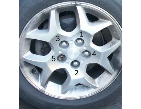 Now it's time to put the wheel back on. Is there a sequence in which the wheel's lug nuts should be tightened? Yes, please see the photo for sequence in which the lug nuts should be tightened (very important) Before driving the car after replacing brakes pump the brakes several times so the pads touch the rotors.. Check the level of your break fluid. If necessary add the fluid (or remove) so the level stays at max level. For first 200 km avoid heavy and quick breaking - this will mate the new pads to the surface of your rotors. (picture 12 and picture 13)